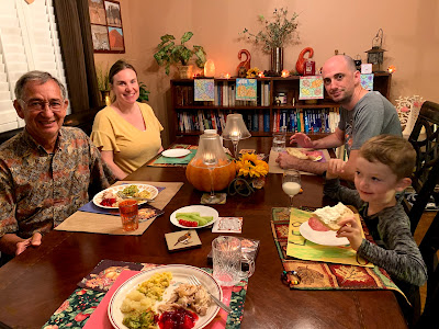 We had Leo for online school 3 days in a row - with a weekend in between. We had him Thursday and Friday, and then Monday. Saturday Fernando and Eva came for dinner to bring Leo home and Sunday we went to their house for dinner to bring Leo back for school on Monday. If I had my way, I'd do online school with Leo every single day. To me, it's a privilege to be able to "sit in" on his class and watch the interactions and the learning going on.